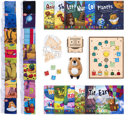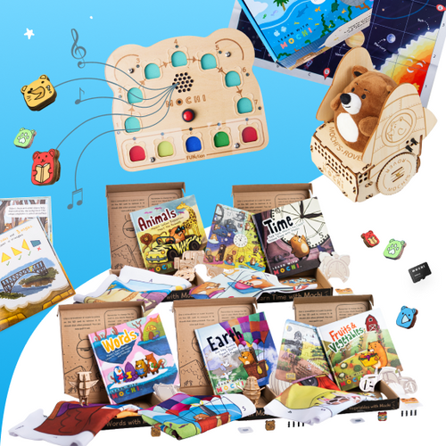 Complete your Mochi adventure book collection. This bundle includes - Animals, Words, Fruits & Vegetables, Earth, and Time. Mochi Robotics Kit not included.